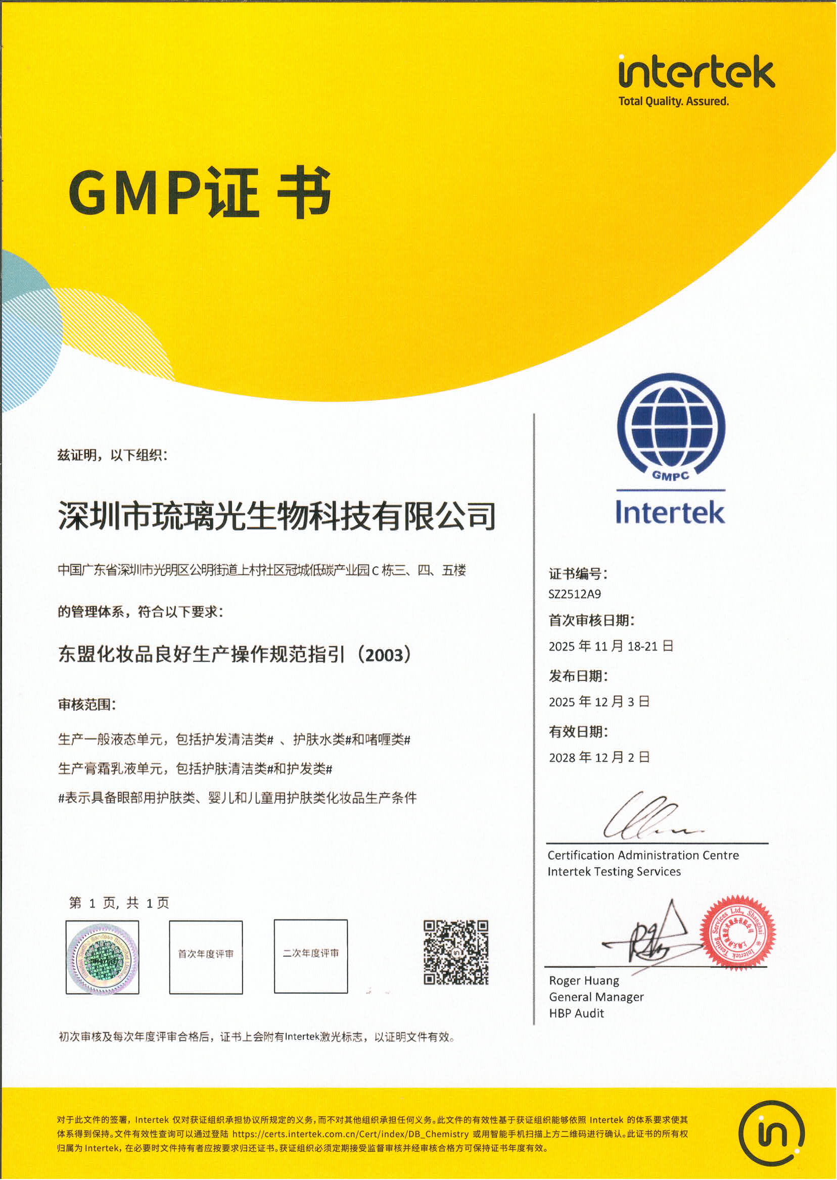 琉璃光GMP證書_美國GMPC中文證書